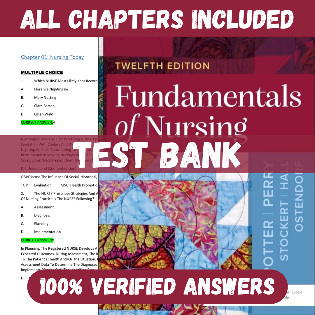 Test bank for Fundamentals of Nursing 12th Edition by Patricia A. Potter